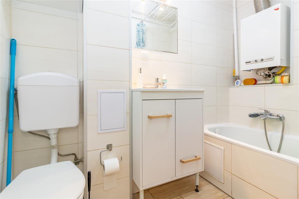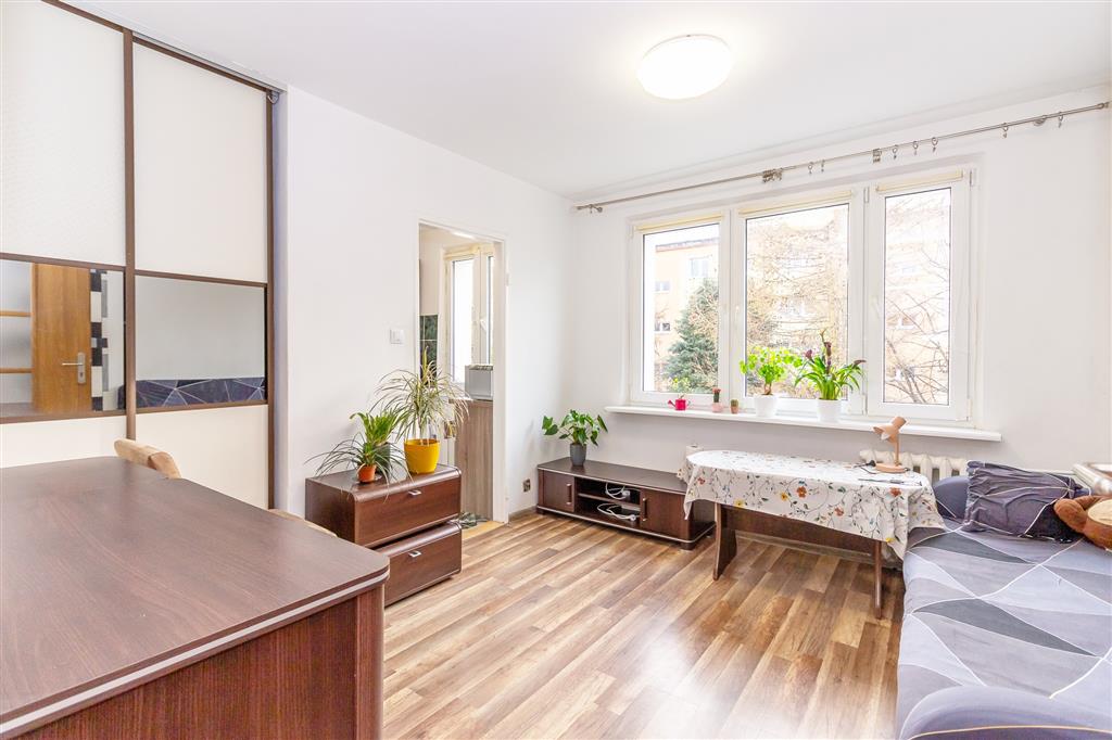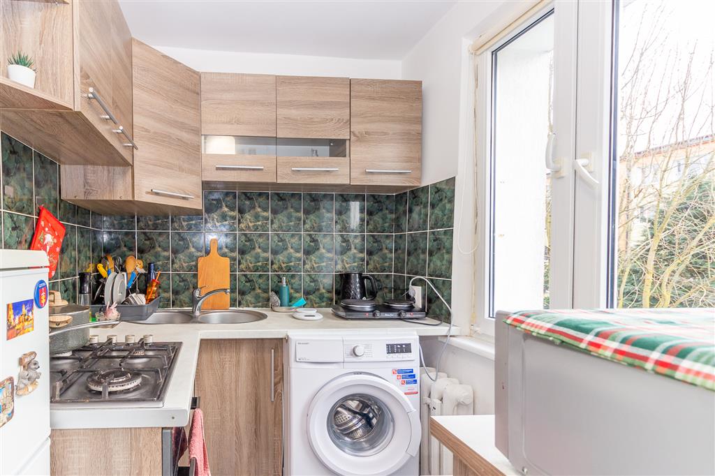 Mieszkanie położone jest na II piętrze czteropiętrowego bloku i składa się z przedpokoju, z którego wchodzimy do pozostałych pomieszczeń: salonu z przejściem do kuchni z oknem, sypialni i łazienki - łączna powierzchnia użytkowa to 33,03m2.