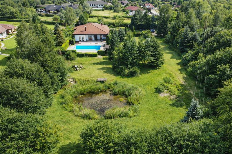 Na terenie nieruchomości znajduje się miejsce po dawnym stawie – obecnie do własnej aranżacji. Możliwość przywrócenia funkcji wodnej lub stworzenia indywidualnej strefy rekreacyjnej (np. oczko wodne, ogród wypoczynkowy, przestrzeń sportowa).