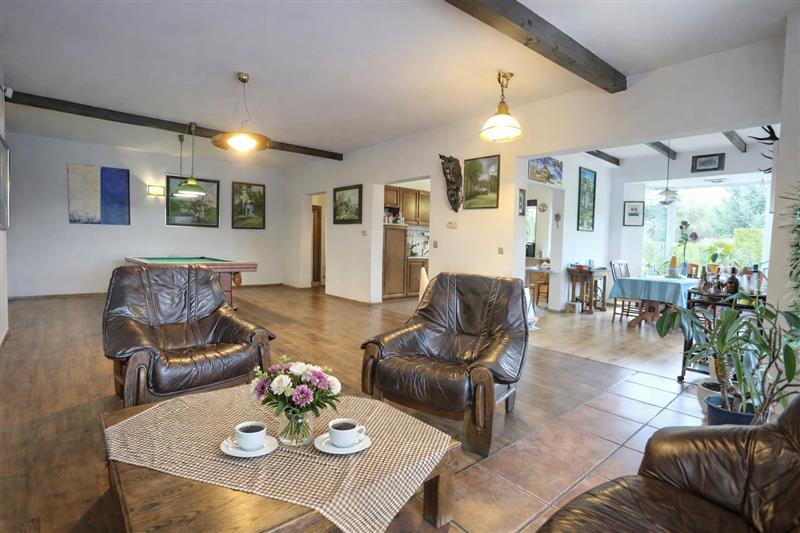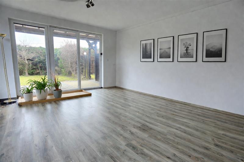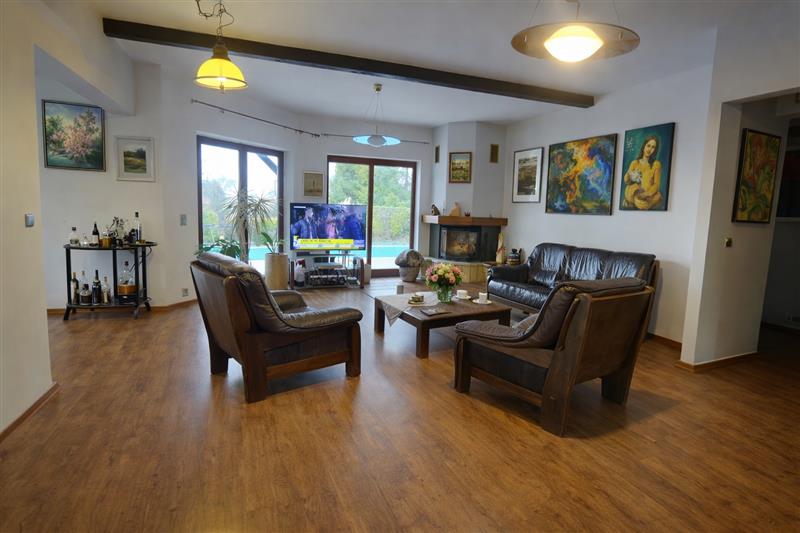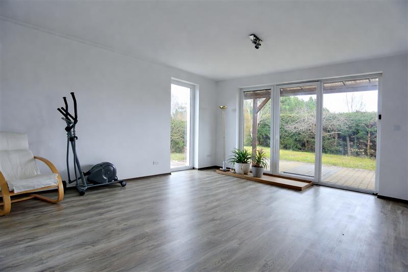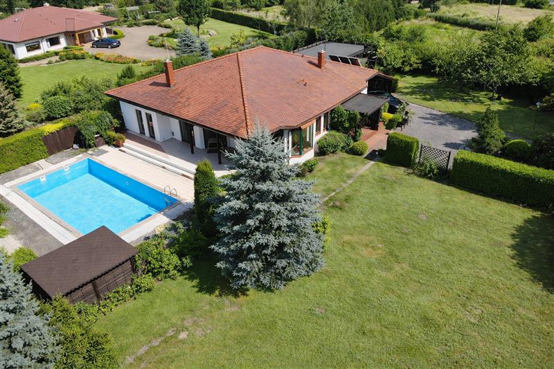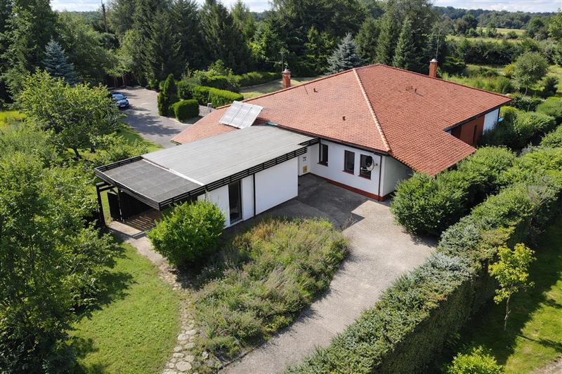 Dom jednorodzinny o powierzchni 230 m2 (155 m2 + 75 m2), usytuowany na przestronnej działce 5444 m2. Nieruchomość zaprojektowana jako dwa niezależne segmenty mieszkalne z osobnymi wejściami (osobne są także bramy i wjazdy na posesje) – idealne rozwiązanie dla rodziny wielopokoleniowej lub jako przestrzeń dla gości bądź działalności.