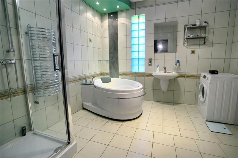 Część apartamentowa (75 m2): 2 pokoje, łazienka z WC, przedpokój – w pełni niezależna przestrzeń mieszkalna.