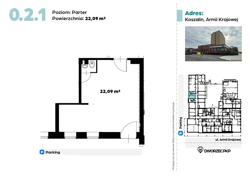 Powierzchnia 22,09 m2, składają się z jednego pomieszczenia oraz miejsca na węzeł sanitarny.