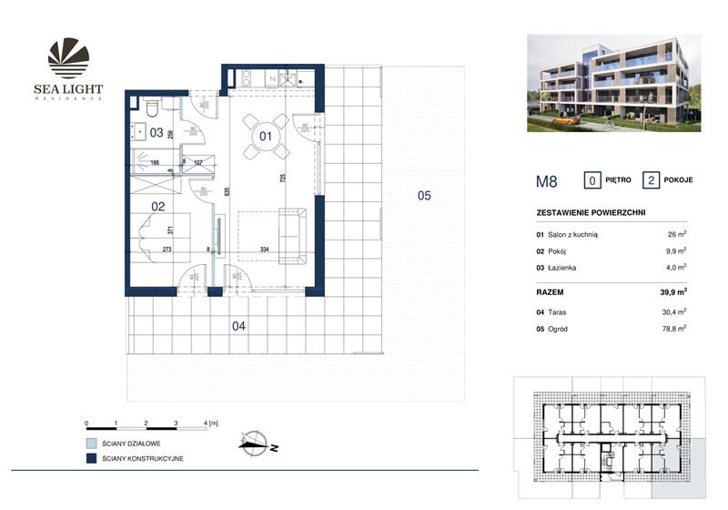 Prezentujemy dwupokojowy  apartament o powierzchni 39,90 mkw z tarasem i ogródkiem położony na parterze.