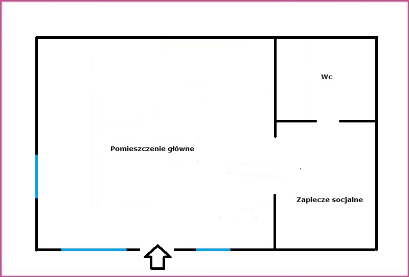 Lokal o powierzchni 23 m2, składający się z pomieszczenia głównego, zaplecza socjalnego oraz wc. Do lokalu prowadzi niezależne wejście z zewnątrz.