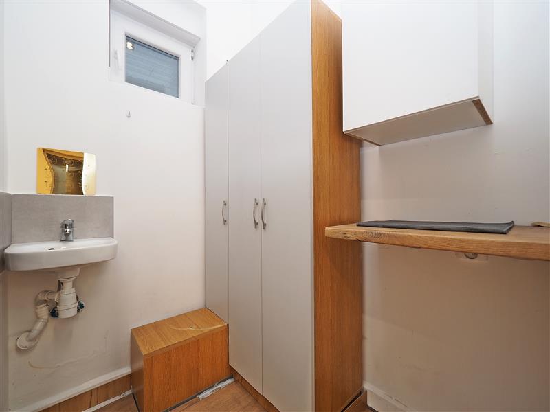 W pomieszczeniu głównym znajduje się drugie źródło wody wraz z kanalizacją pod myjkę do włosów czy zlew.
