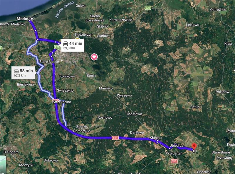 - Mielno: 55 km
